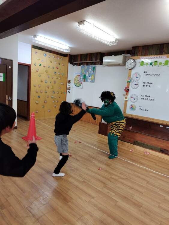 驚きながらもみんなで鬼にむかって豆を投げることが出来ました!